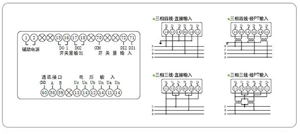 顯示:三排LED同時顯示A、B、C三相電壓